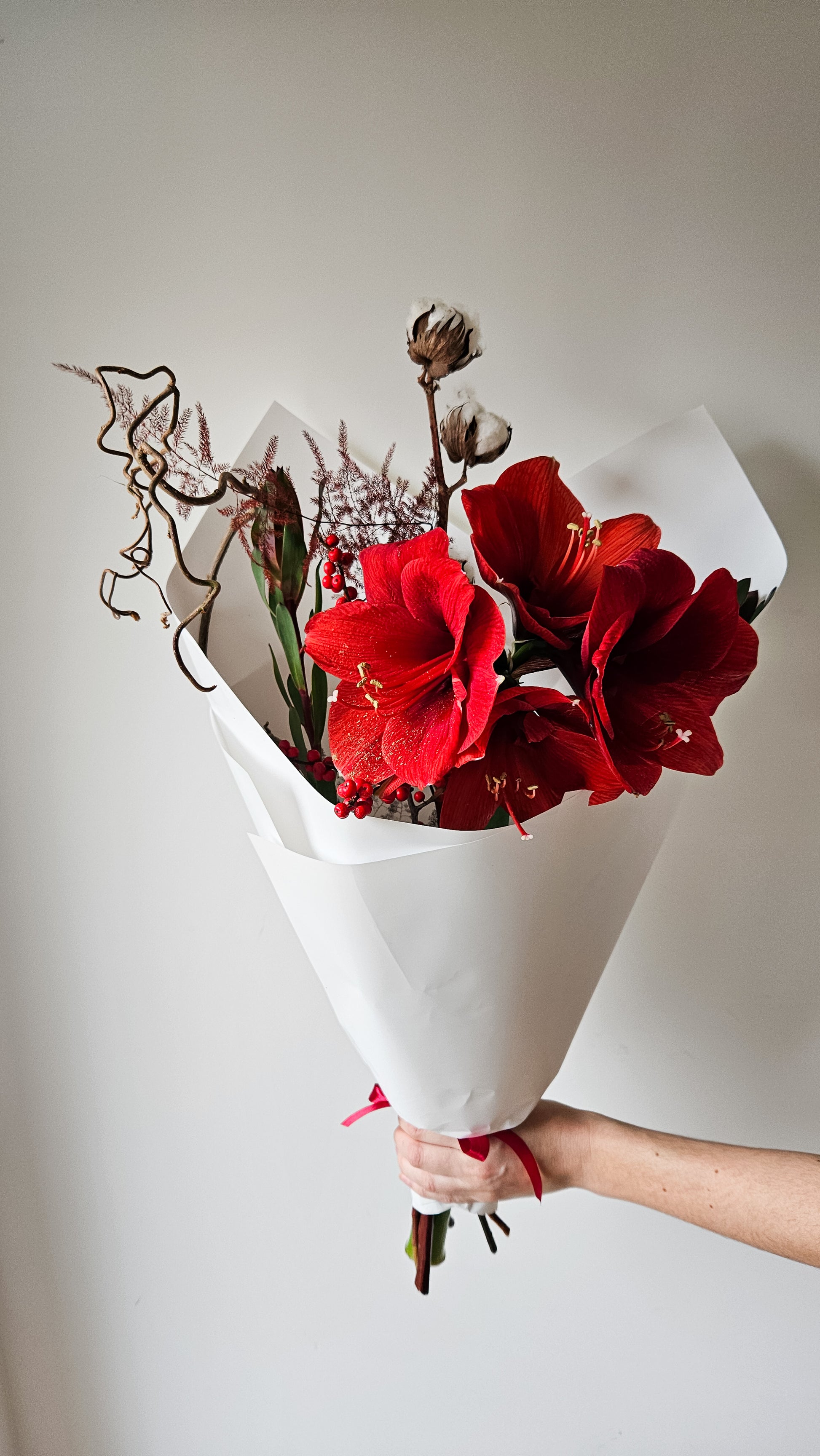 Nepriekaištingai suderinta puokštė iš didingų amarilių žiedų, subtiliai papildyta eukalipto žaluma ir natūralia medvilne. Kiekvienas elementas čia turi savo charakterį – tarsi tylus, bet užtikrintas pareiškimas.